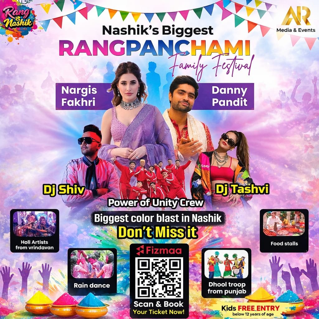 एआर मीडिया अँड इव्हेंट्सने ‘रंग दे नाशिक’ क्युरेट केला असून भरपूर ऊर्जा असलेले मनोरंजन आणि जबाबदार उत्सव यांचा संयोग घडविणे हे या कार्यक्रमाचे लक्ष्य आहे. बॉलीवूड अभिनेत्री नर्गिस फाखरी आणि इन्फ्लूएन्सर डॅनी पंडित हे या कार्यक्रमाचे प्रमुख आकर्षण असणार आहेत. नाशिकमध्ये एखाद्या मोठ्या प्रमाणात सार्वजनिक उत्सवात हा तिचा पहिला सहभाग ठरणार आहे. त्यांच्यासोबत दिवसभर अन्य कलाकार आणि प्रत्यक्ष कलाकारांचेही नियोजन आहे. येथील प्रवेशद्वार सकाळी ११ वाजता उघडणार असून नाशिक आणि जवळपासच्या शहरांमधून हजारो जण उपस्थित राहतील, अशी आयोजकांची अपेक्षा आहे. यातून संघटित, सुरक्षित आणि प्रत्यक्ष अनुभवात्मक सांस्कृतिक मेळाव्यांसाठीच्या वाढत्या मागणीचे प्रतिबिंब पडले आहे.